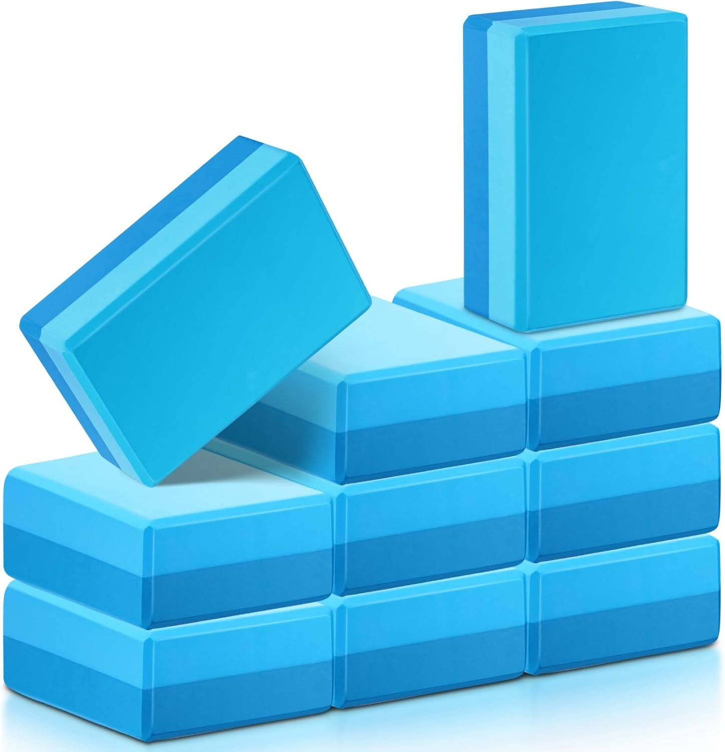 10 Pcs Yoga Blocks Bulk Eva Foam Exercise Yoga Brick Soft Non Slip Surface Foam Blocks High Density Yoga Accessories for Workout Stability Balance Deepen Stretches Pilates 9”x6”x3”(Blue)