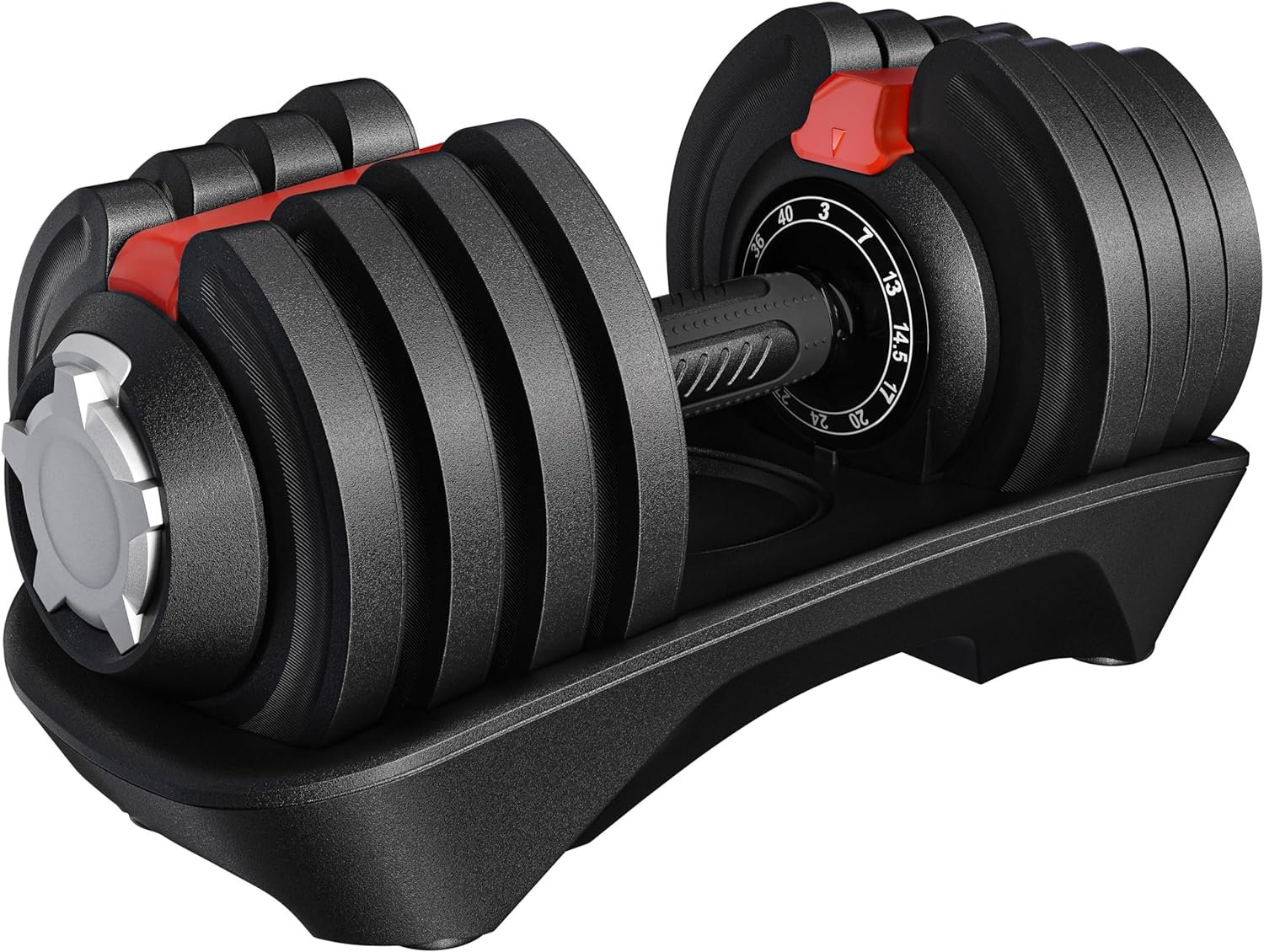 • 12-IN-1 ADJUSTABLE DUMBBELLS:This dumbbell set spans a wide weight range from 4 lb to 40 lb in diverse and smaller increments to facilitate gradual resistance, intensity, or volume adjustments.
